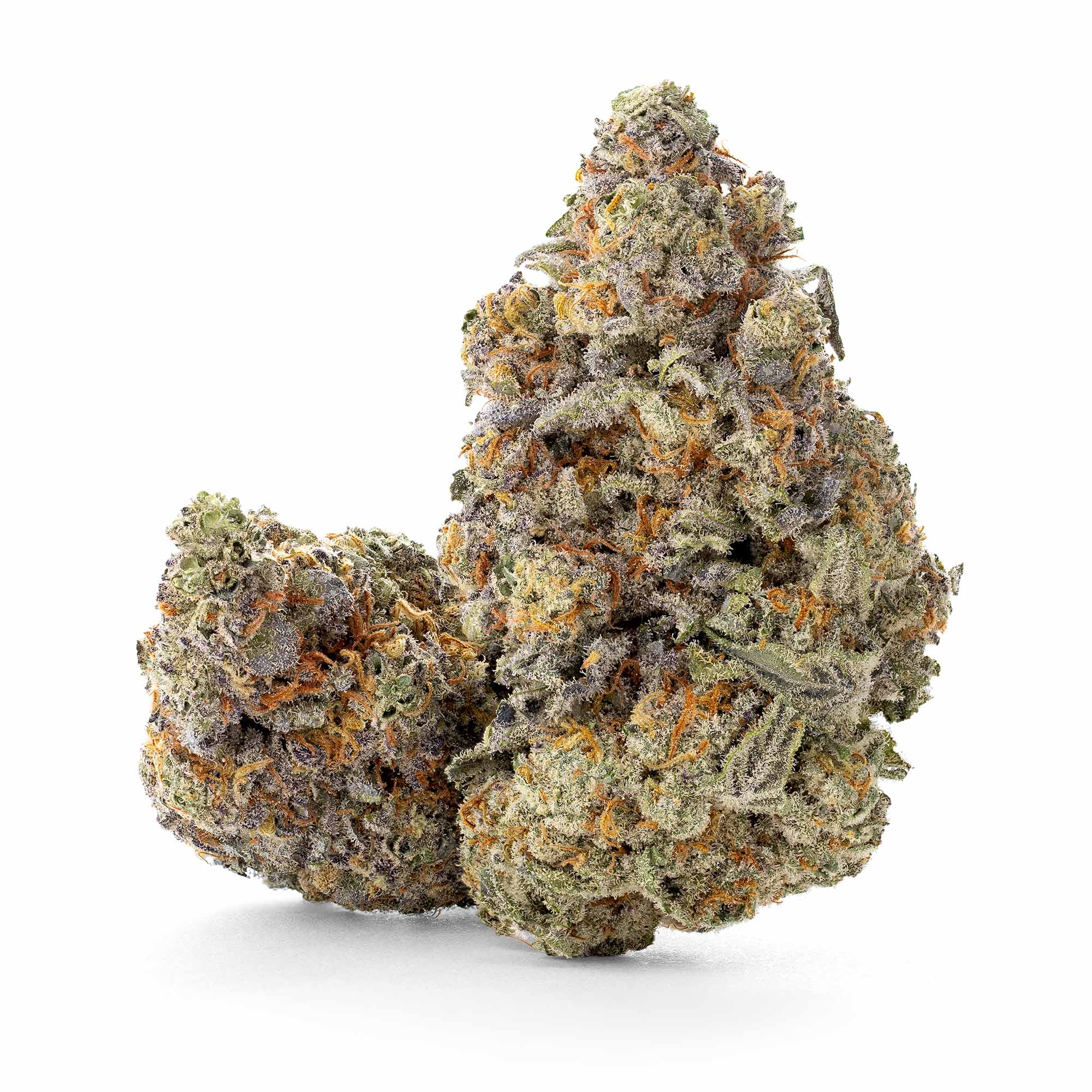 Visually, McFlurry is a stunner. These chunky, cone-shaped buds flaunt deep forest green tones with rich purple highlights, fiery orange hairs, and a heavy blanket of frosty, white crystal trichomes with a hint of lavender. It’s like holding a snow-capped mountain in your palm.